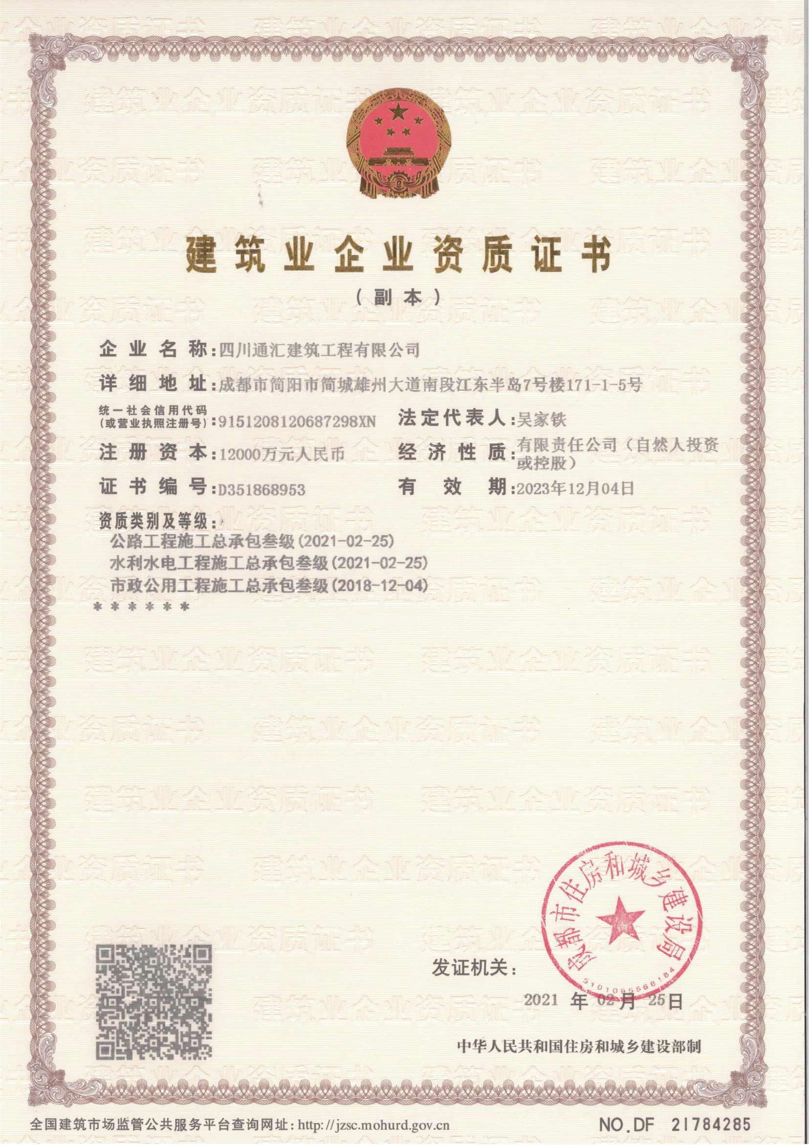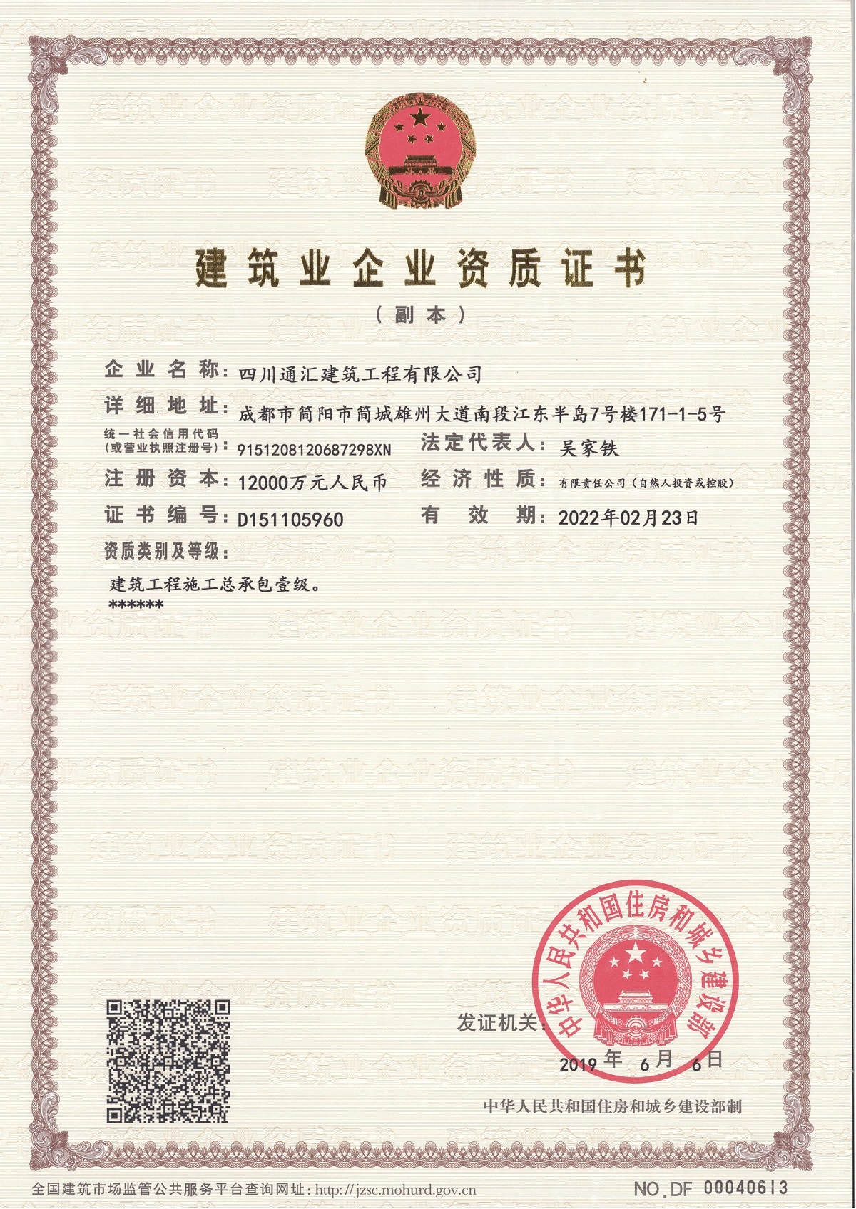 建筑工程施工总承包壹级-四川通汇建筑工程有限公司