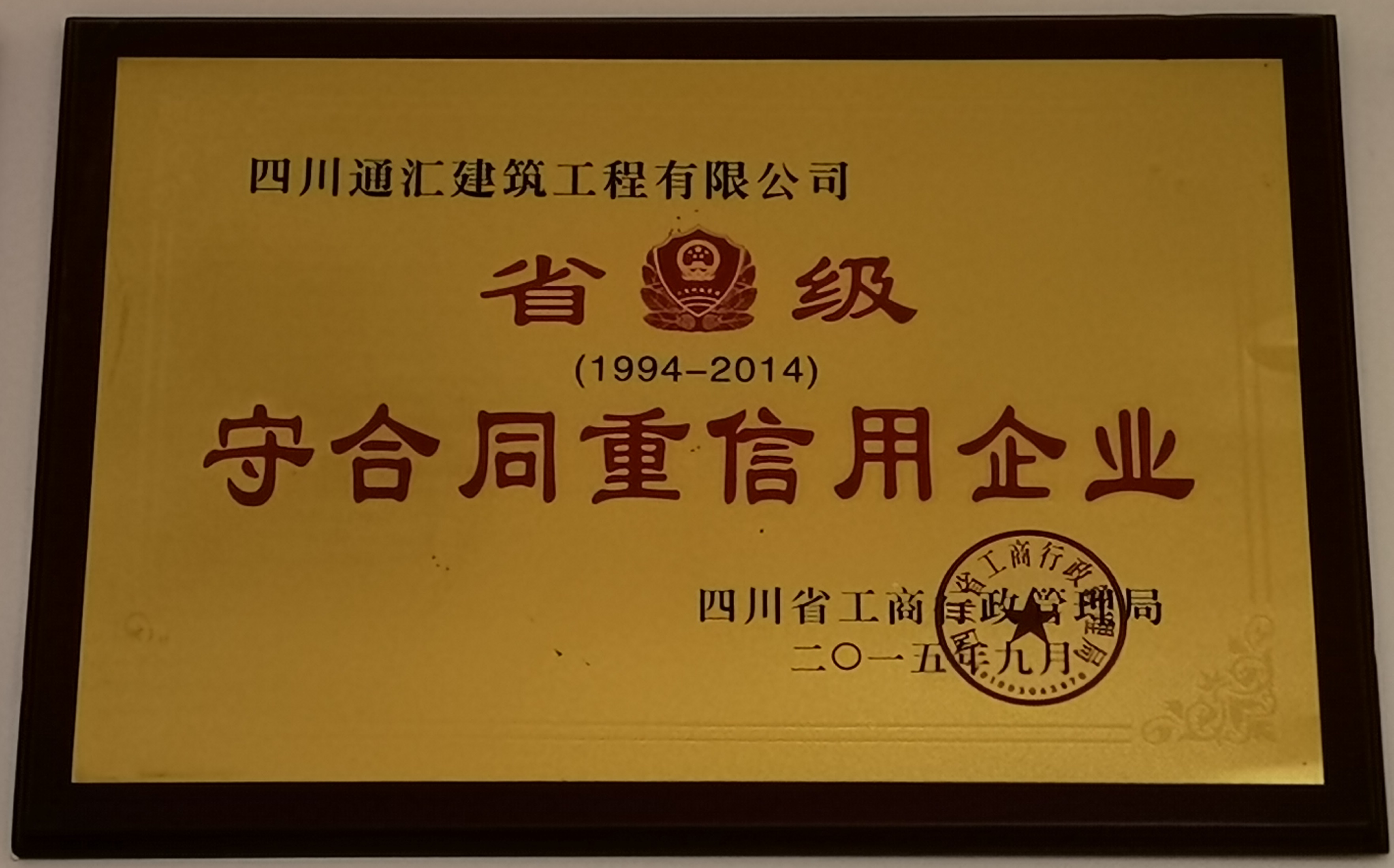 1994-2014省级守重信用企业证书——四川通汇建筑工程有限公司