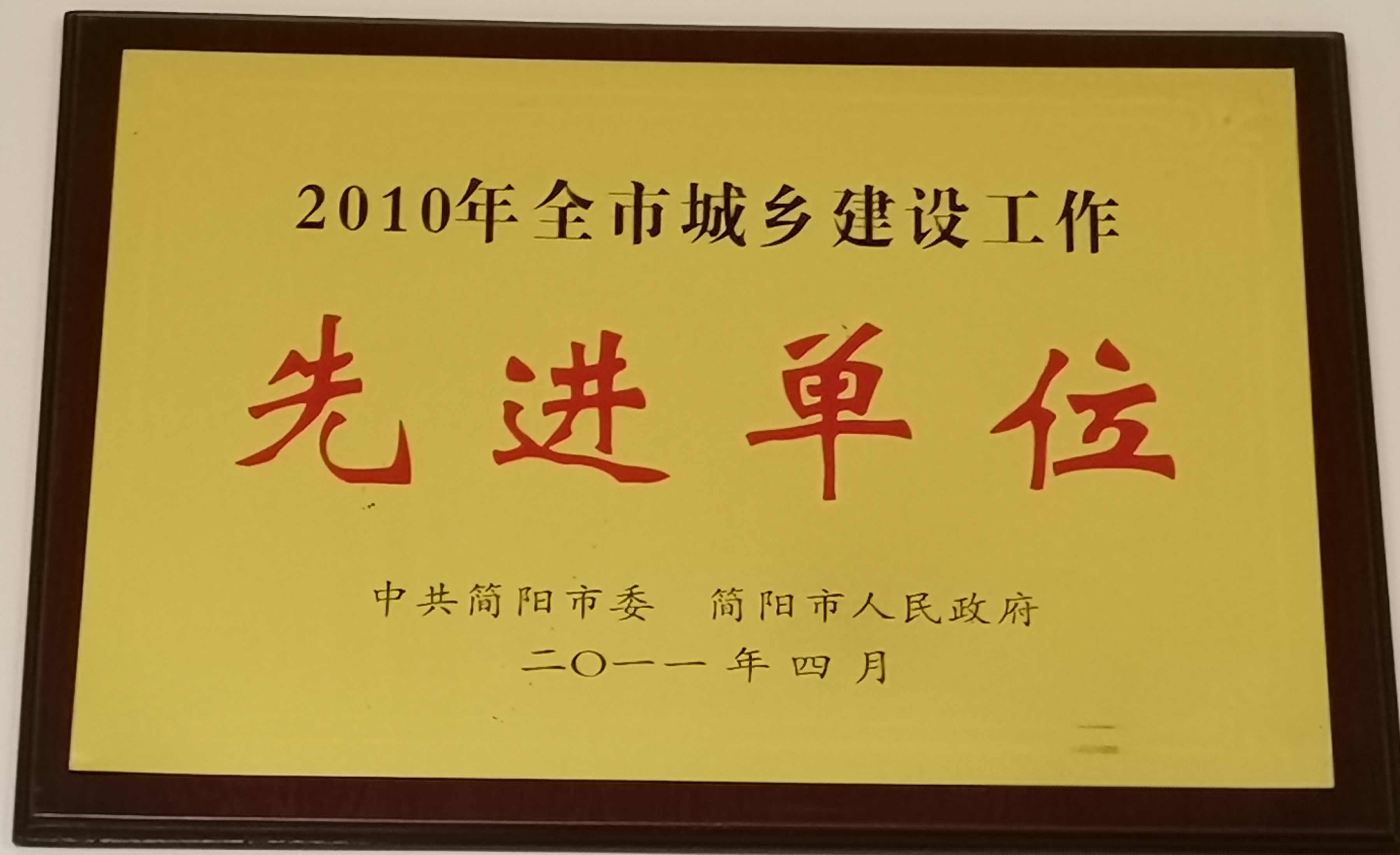 2010建设先进单位证书——四川通汇建筑工程有限公司
